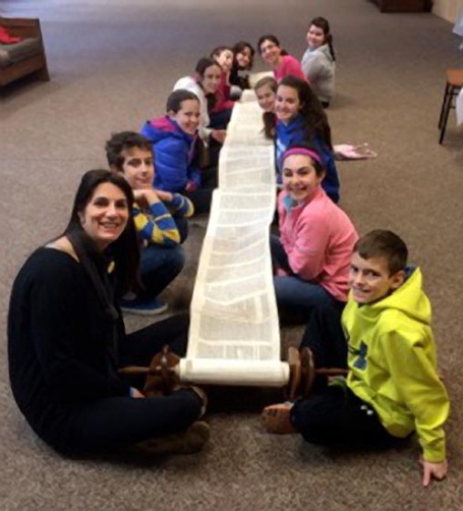 Every year Sinai Temple's Sixth Grade classes goes on a one-day retreat to begin the exploration of Bar/Bat Mitzvah. The Retreat takes the children out of their "regular" classrooms and away from home so that they can think creatively about the reality of becoming young Jewish adults. The children "play" a huge game of identifying all component parts of the Torah's story. They then break into creative groups and act out the story of the Torah. Their acting is filmed and later made into a movie for them to enjoy. At one point in the weekend the children unroll a Torah scroll (very carefully) and search for the highlights of the text. Finally, each child receives his or her Torah portion and creates a poster depicting the meaning of the parasha.