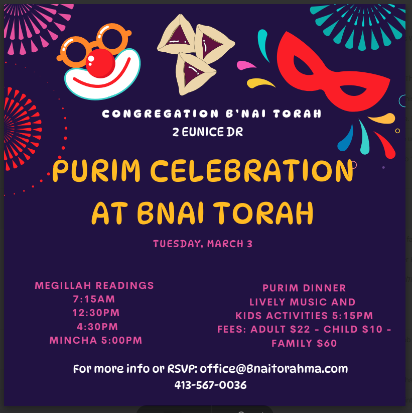 Purim Celebration and Dinner at B'nai Torah!