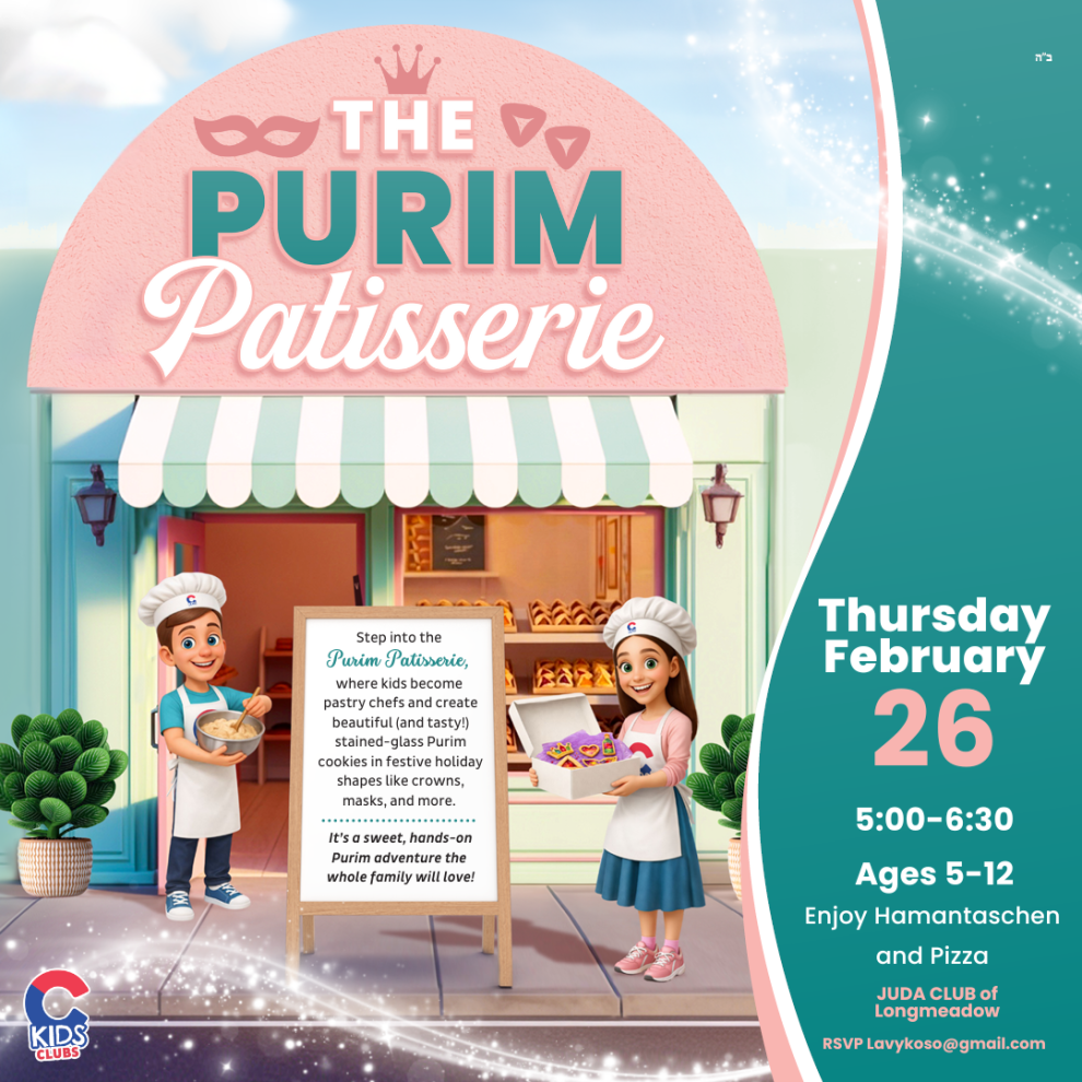 Join us for The Purim Patisserie, a hands-on, fun-filled experience where kids become pastry chefs for the day! Children will decorate beautiful (and delicious!) Purim cookies, enjoy hamantaschen and pizza, and celebrate the joy of Purim in a creative, festive atmosphere.