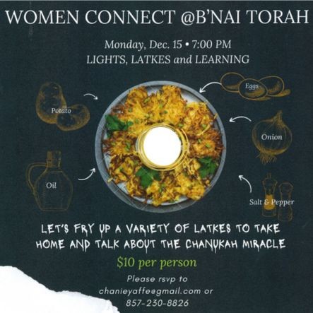 Women Connect at B'nai Torah. Lights, Latkes and Learning.